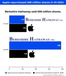 Berkshire Hathaway sold 116 million Apple shares in Q1-2024. In Q2-2024, this is expected to have increased to approximately 390 million. Apple it...